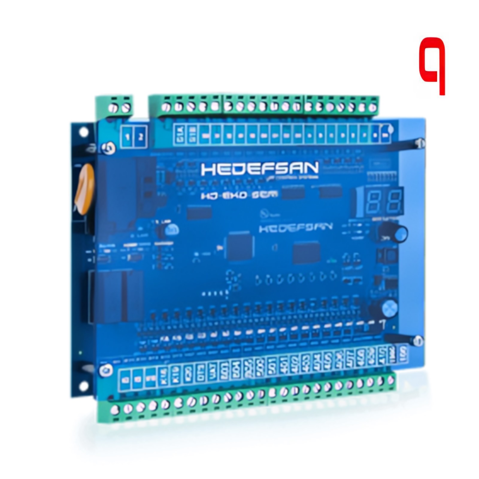 - Hedefsan 200 X S Motherboard + serielle Karte. Lieferumfang: 1 Stück HD 200 1 Stück 200 X S Klemmbrett 3 Flachkabel Stabilisatorteile 1 HD 200 X S SERIENKARTE IST IM LIEFERUMFANG ENTHALTEN! • 16 durağa kadar basit ve toplamalı kumanda çalışabilir • Çağrı lamba ve butonları yalnızca bir kablo ile sisteme bağlanabilir • Tüm parametreler kart üzerindeki LCD ekran ve program butonları yardımı ile kolaylıkla ayarlanabilir • Şifre korumalı programlama, izinsiz kullanıma karşı PUK kodu koruması • Son oluşan 16 hata; durak, yön, gün ve saat bilgileri ile birlikte LCD ekrandan izlenebilir • Bekleme konumunda LCD ekranda son bakımdan sonra asansörün ne kadar süre (gün, saat) çalıştığının izlenebilmesi • Ayarlanabilir bakım süresi, bakım süresi dolduğunda LCD ekranda uyarı • Dahili klemens kartı sayesinde basit ve hatasız montaj, zaman ve kumanda panosu klemenslerinden tasarruf • Aşırı yük fonksiyonu • Kısa devre korumalı, her durak için ayarlanabilen display çıkışları • Display çıkışlarının gray kod veya binary çıkışa çevrilebilmesi • Yön okları, servis dışı sinyali ve meşgul sinyali için SA röle kontak çıkışları; bu çıkışlar için sinyal ortağı girişi • Ayarlanabilir park durağı ve parka gidiş süresi • Pozisyon bilgisi için sayıcı bi-stabil şalter girişi • İsteğe bağlı olarak ilk enerji geldiğinde kabinin ilk durağa götürülmesi • Kapı uzun süre açık kaldığında veya stop dönüş devresi uzun süre algılanamadığı zaman kart üzerindeki LCD ekranda uyarı fonksiyonu • Ayarlanabilen kabin lambası süresi, kilit bekleme süresi, katta bekleme süresi, maksimum yüksek hız süresi ve maksimum düşük hız süresi • Kapı açma sinyali (AUTO) ve bu sinyalin yön oklarına bağlı olarak çalışma şeklinin seçimi • Program butonları kullanılarak yavaş hızda manuel hareket • Kabinin gideciği ilk durağın her kat değişiminde displayde gösterilmesi seçimi • Revizyonda kabinin limit switchlerine ya da kat hizasına kadar hareket ettirilebilmesi seçimi • Sadece bir kapısı tam otomatik olan asansörlerin tam otomatik kapısının bulunduğu katın seçimi • Elektronik olarak fazlar, faz sırası ve PTC (Motor sıcaklığı) kontrolü, bu kontrollerle ilgili oluşan hataların kart üzerindeki LCD ekranda gösterilmesi, bu fonksiyonların parametre seçimi ile devre dışı bırakılabilmesi, faz seviye hassasiyetinin ayarlanabilmesi